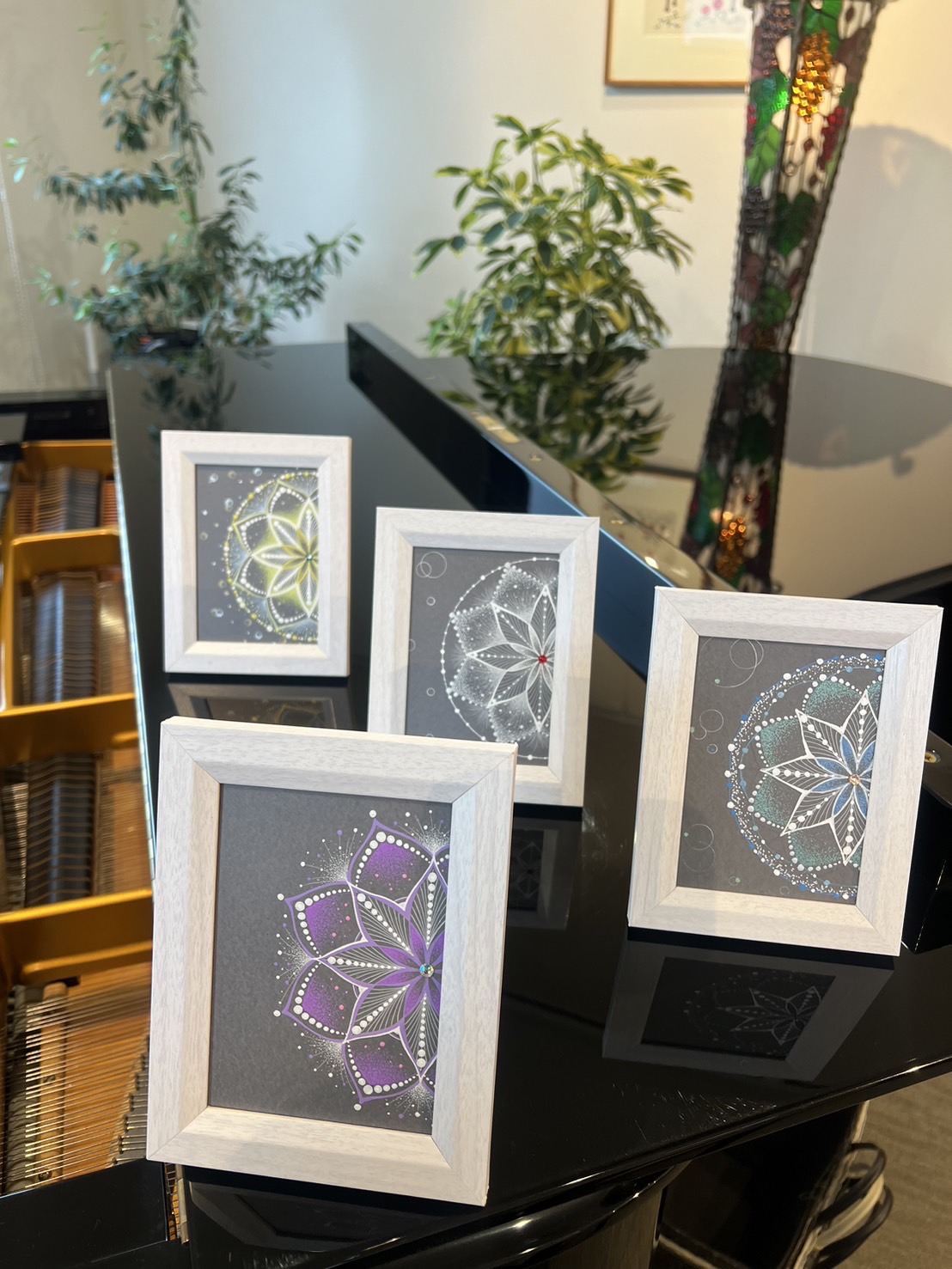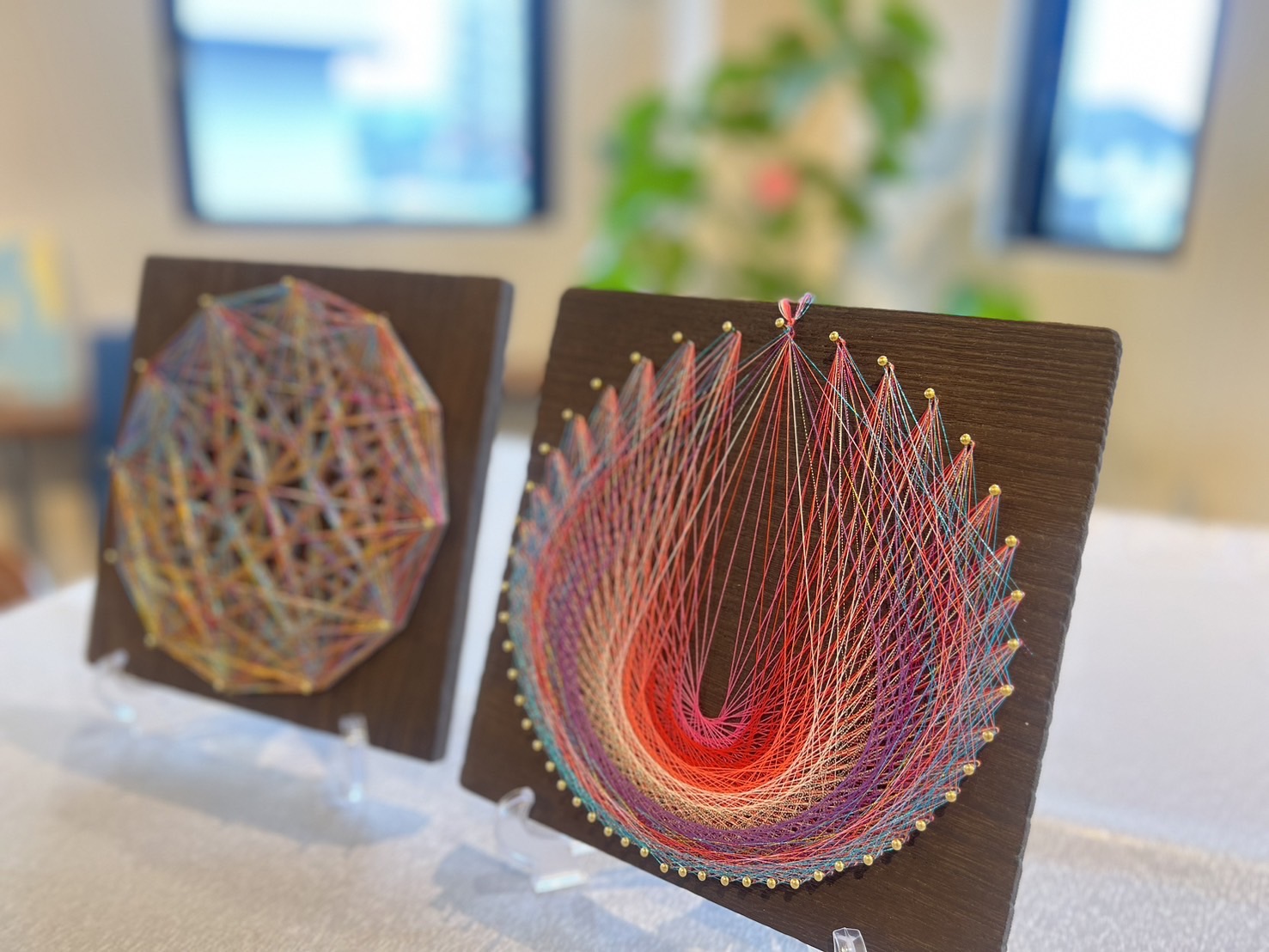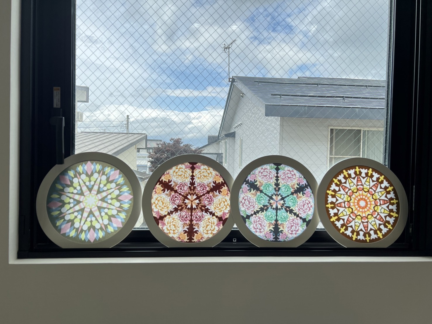 ローズウィンドウ教室、曼荼羅アート教室、糸かけアート教室での生徒さんの作品です。