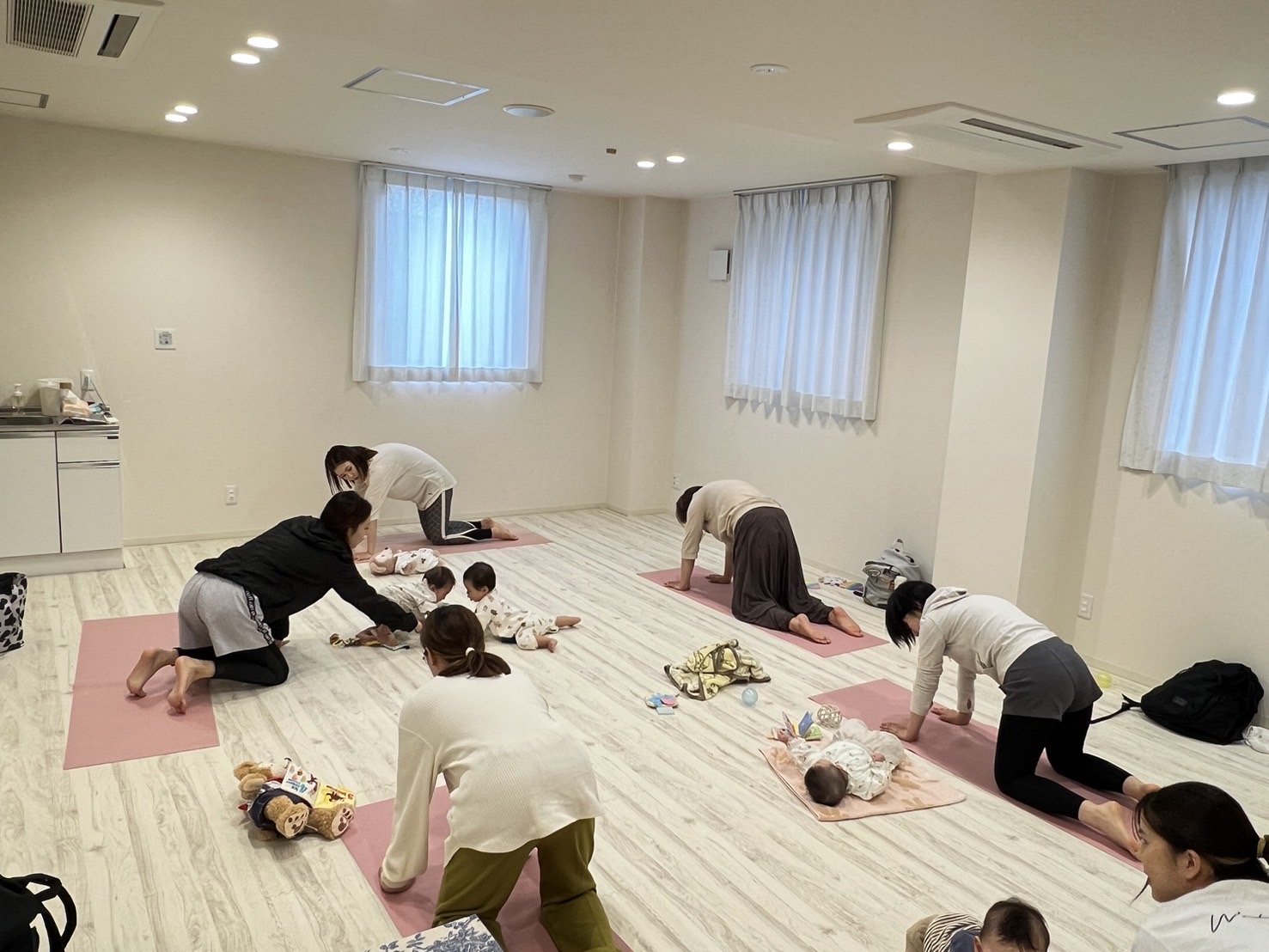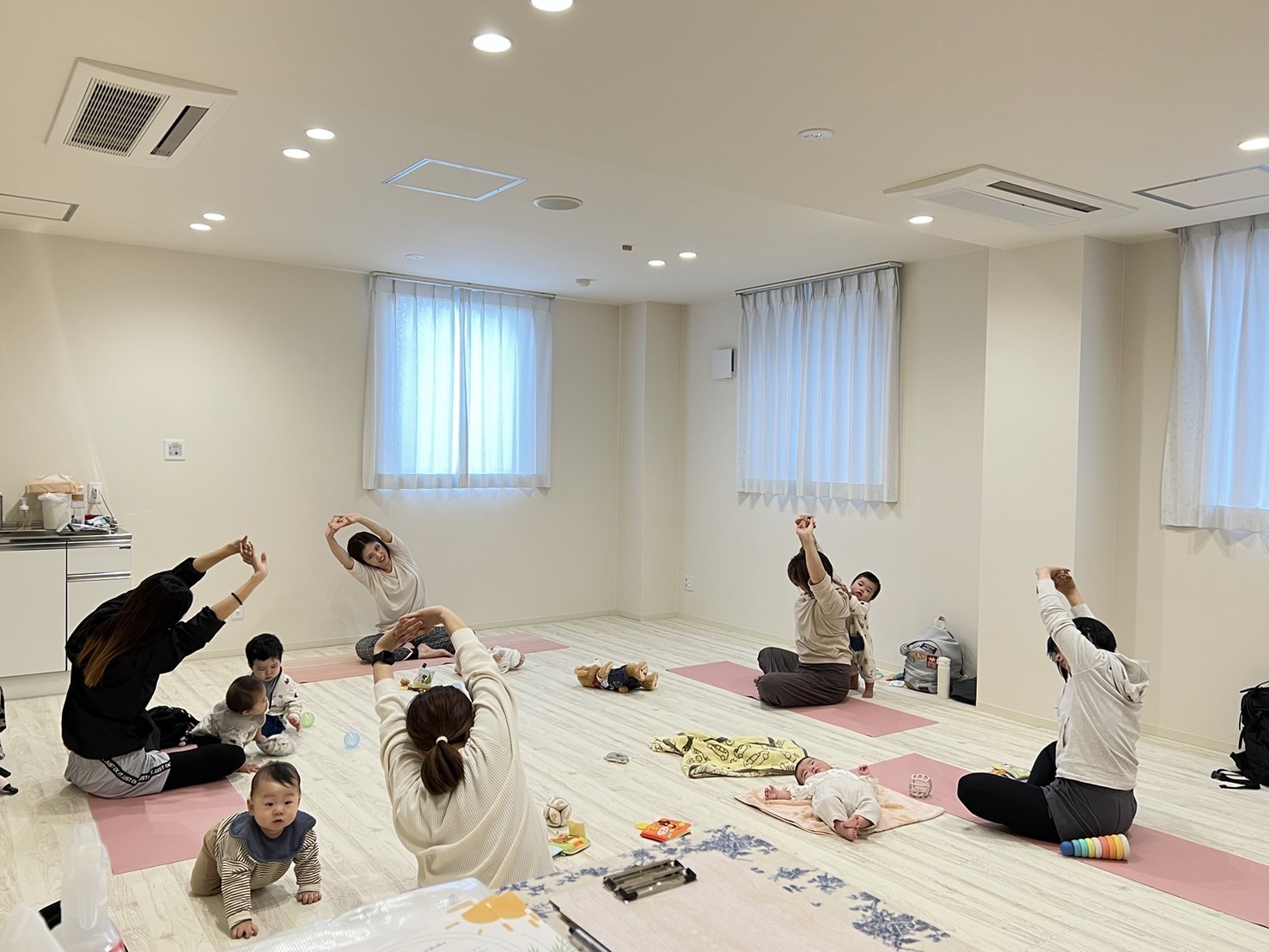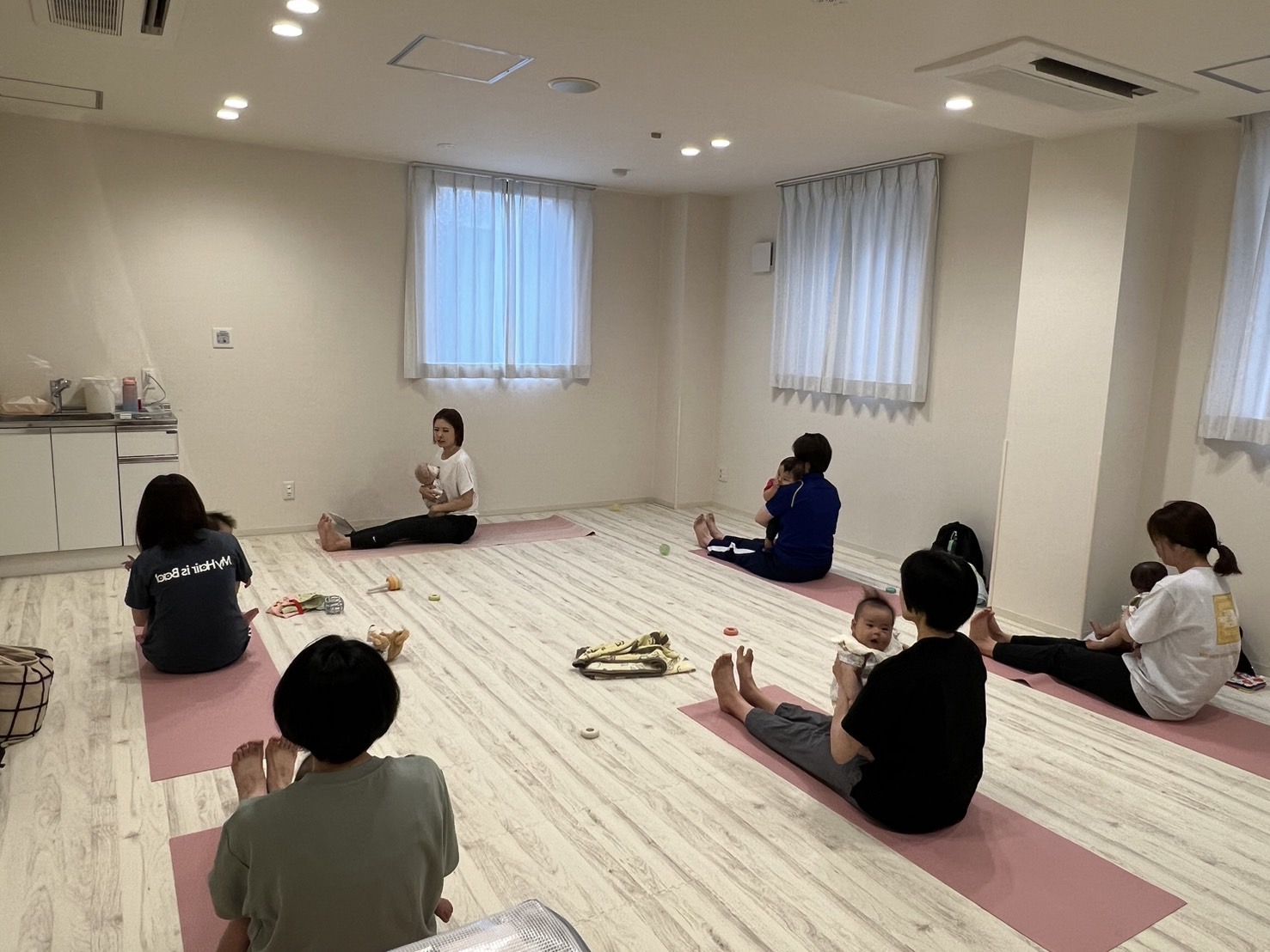 新米ママさんと赤ちゃんとのヨガの様子です。2024年6月26日(水)