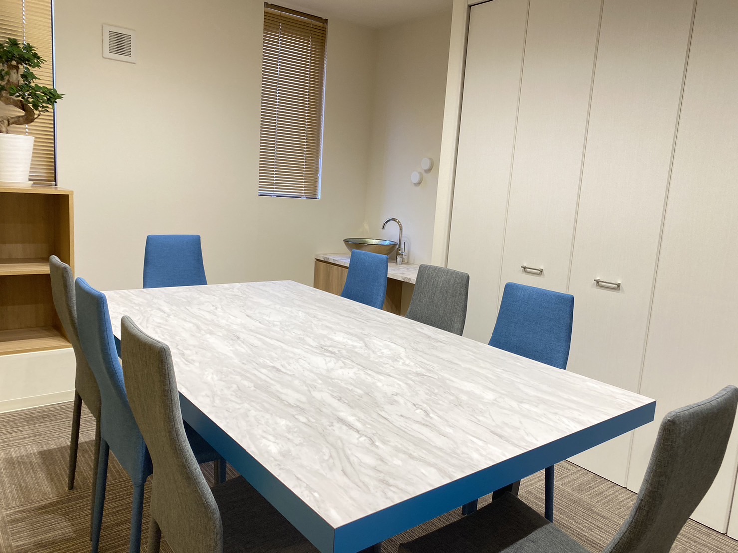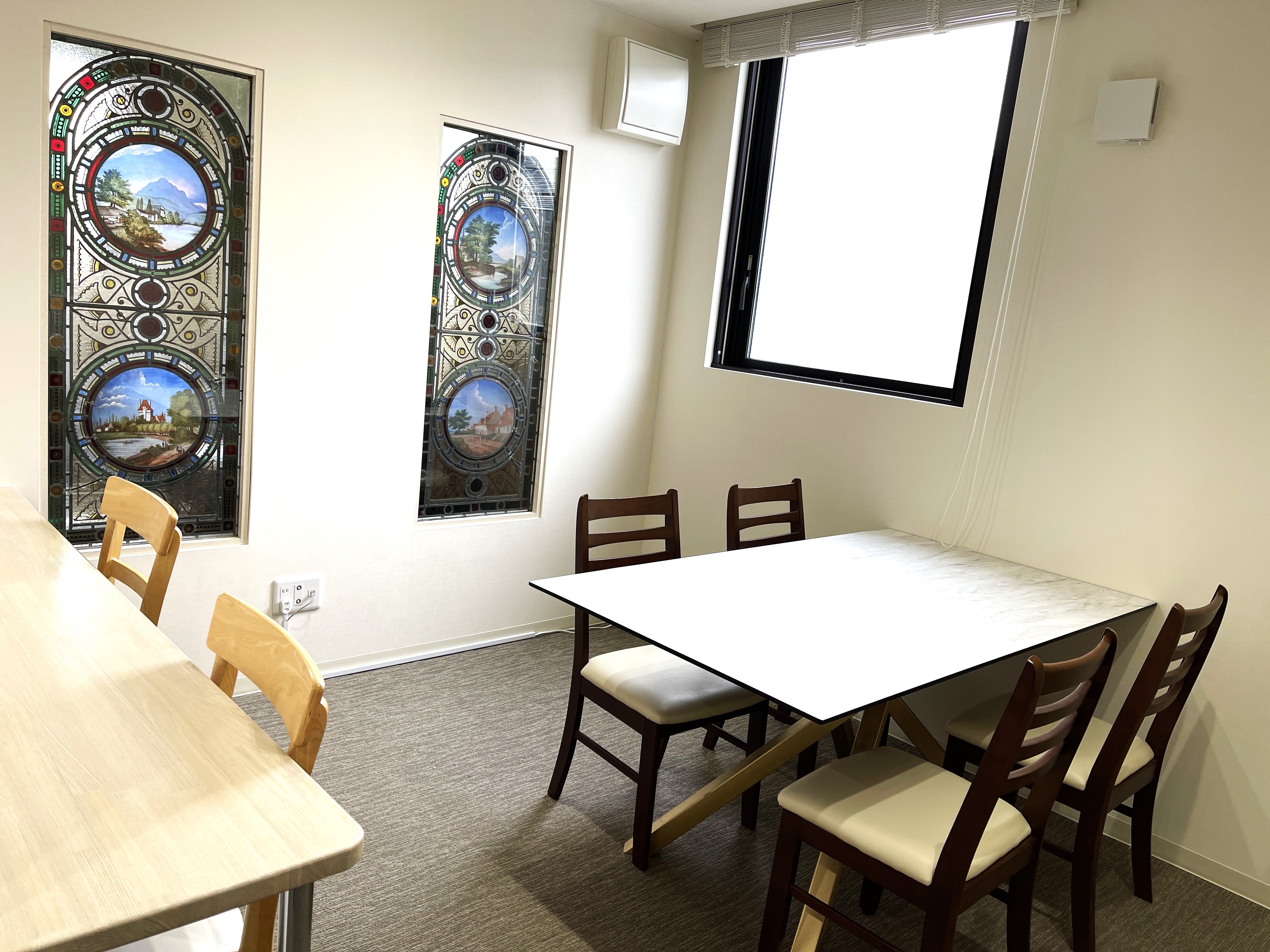 お仕事や学習、またカルチャー教室などで静かな空間でお一人からMAX8名様までご利用いただけます。BLUE VASE(ブルーヴェイス)正面右手入口からお入りいただき、1階個室、2階オフィスがそれぞれございます。是非お気軽にお立ち寄りください。