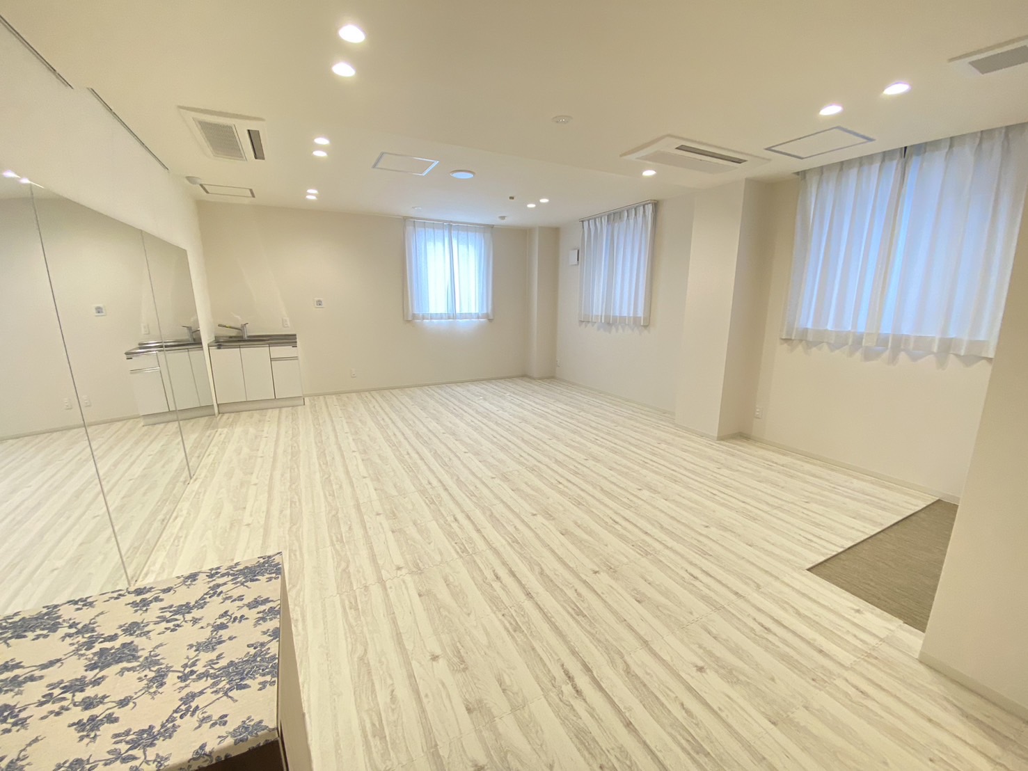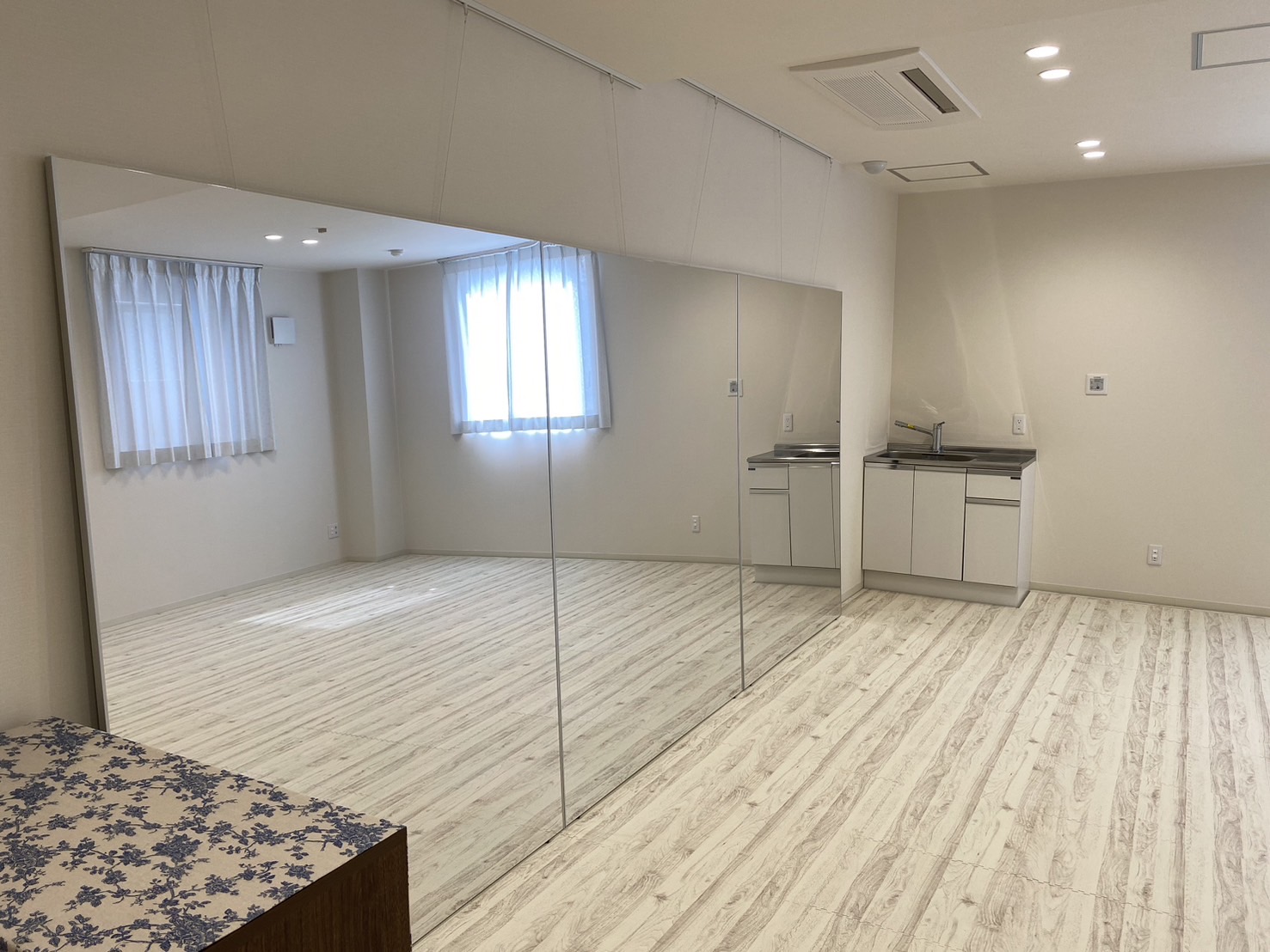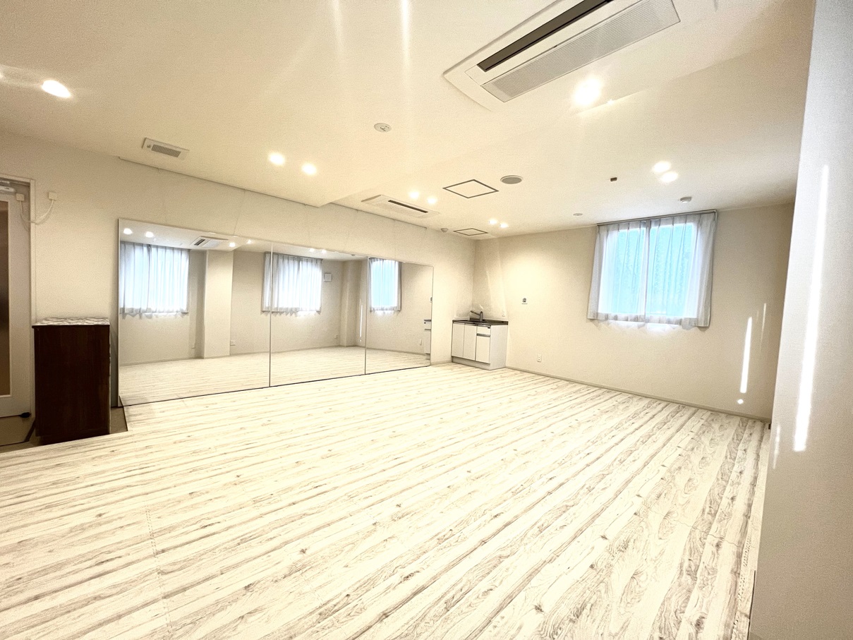 ダンス教室やヨガ教室、きもの着付けなどでご利用いただけます。全身が映る鏡も設置しておりご自身の身体の状態も確認が容易です。また床はソフトな素材を使っておりますので、小さなお子さんやご自身の足腰に負担が少なくとっても優しいです。